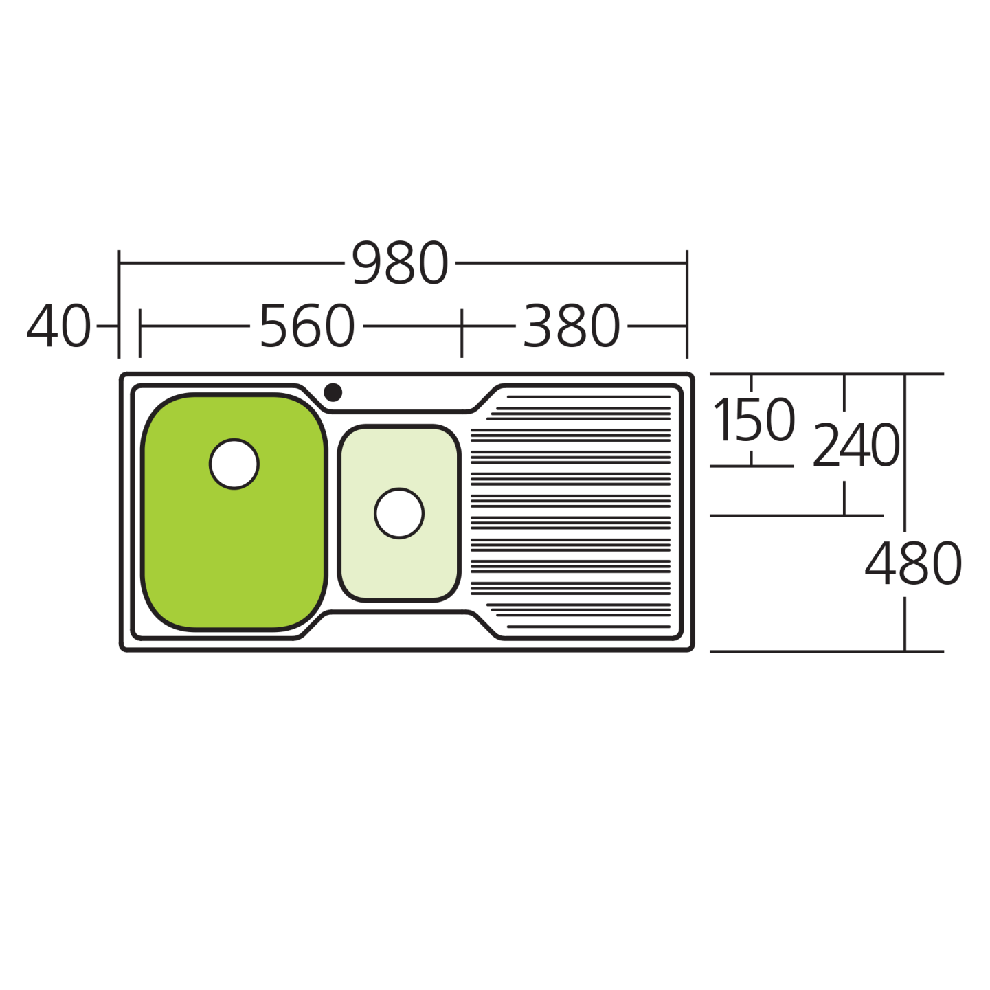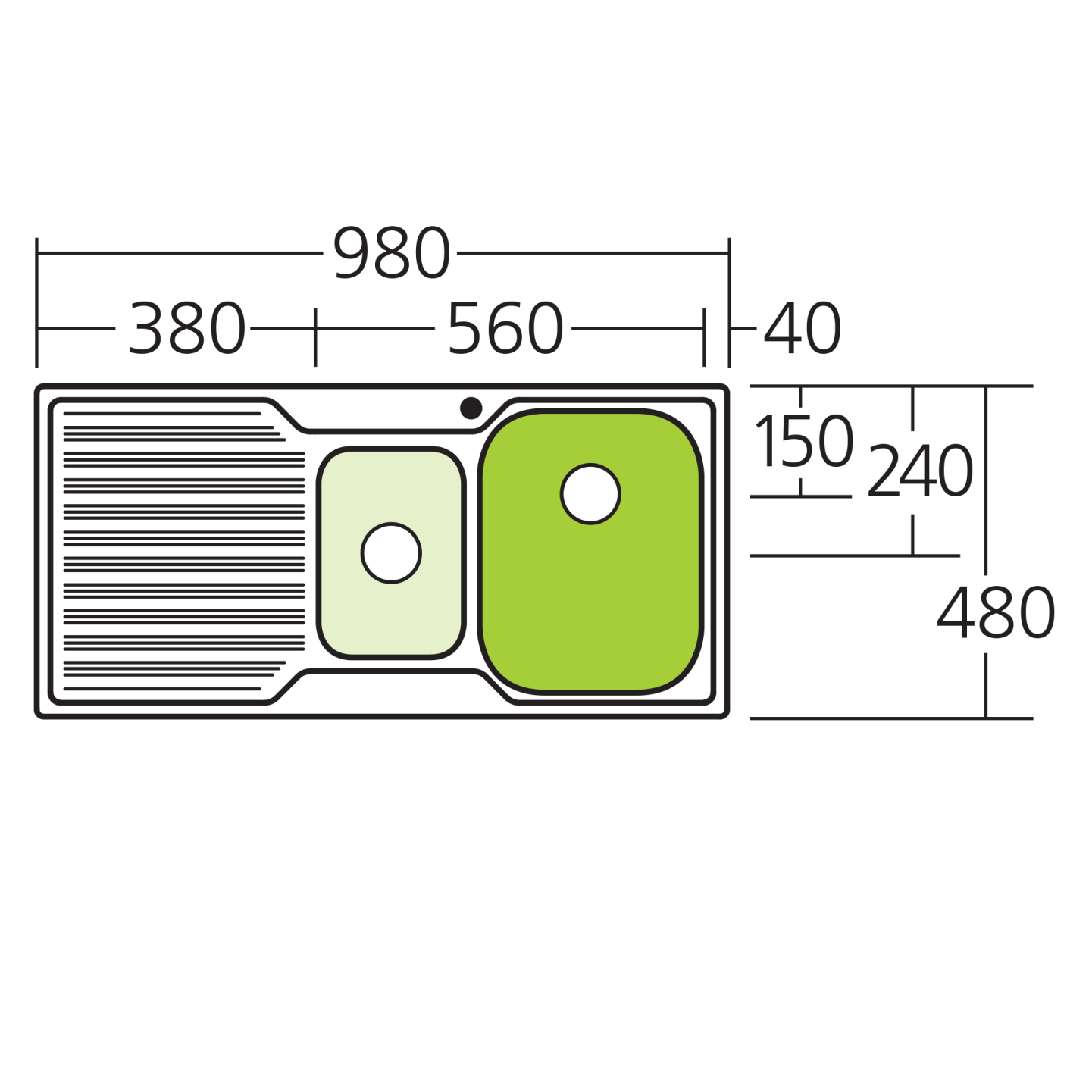 Creates a space for draining dishes and is included standard with double bowl-only sinks.