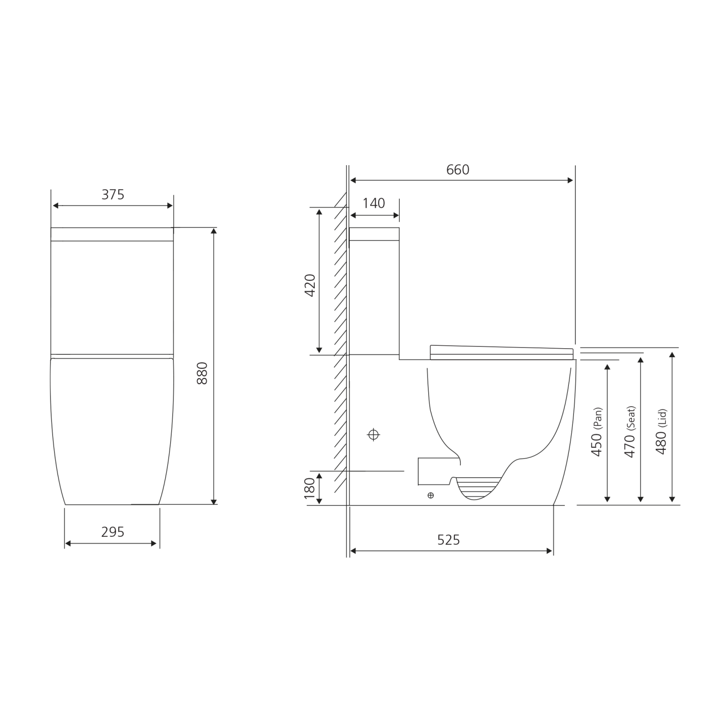 Pan 42.0 kg, cistern 15.0 kg, seat 2.8 kg