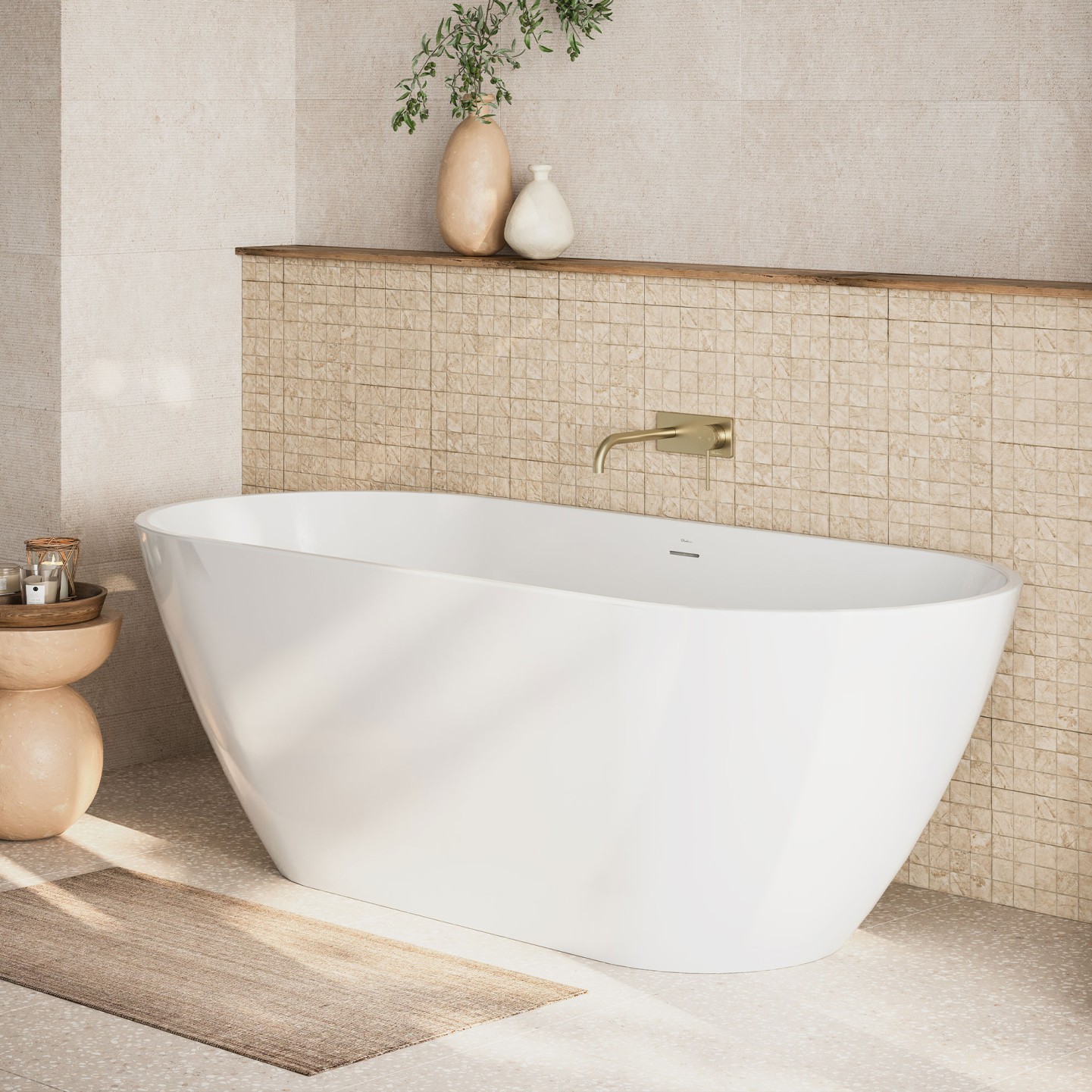 Choose a round, square or longer rectangular basin shape depending on your vanity size and design style. Naples baths are freestanding or inset and the toilet suite features rimless tornado flush, a soft-close seat and R&T cistern and valves.