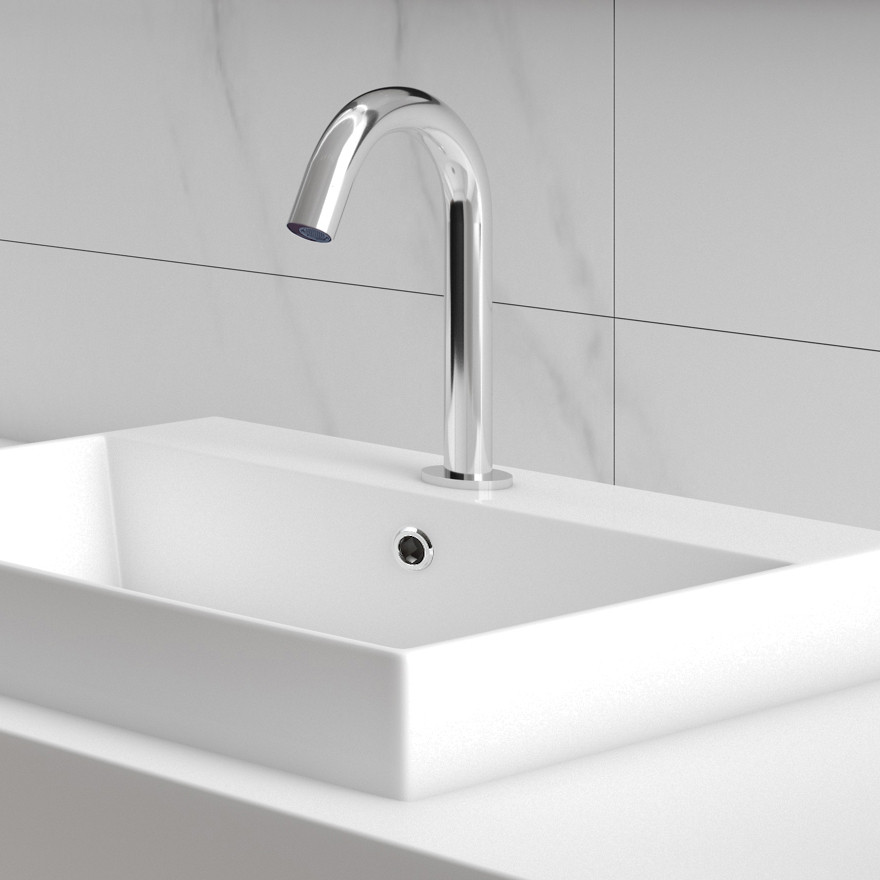 Sensor Tap with single inlet connection suitable for cold water, or warm water with the use of a thermostatic mixing valve (not included).