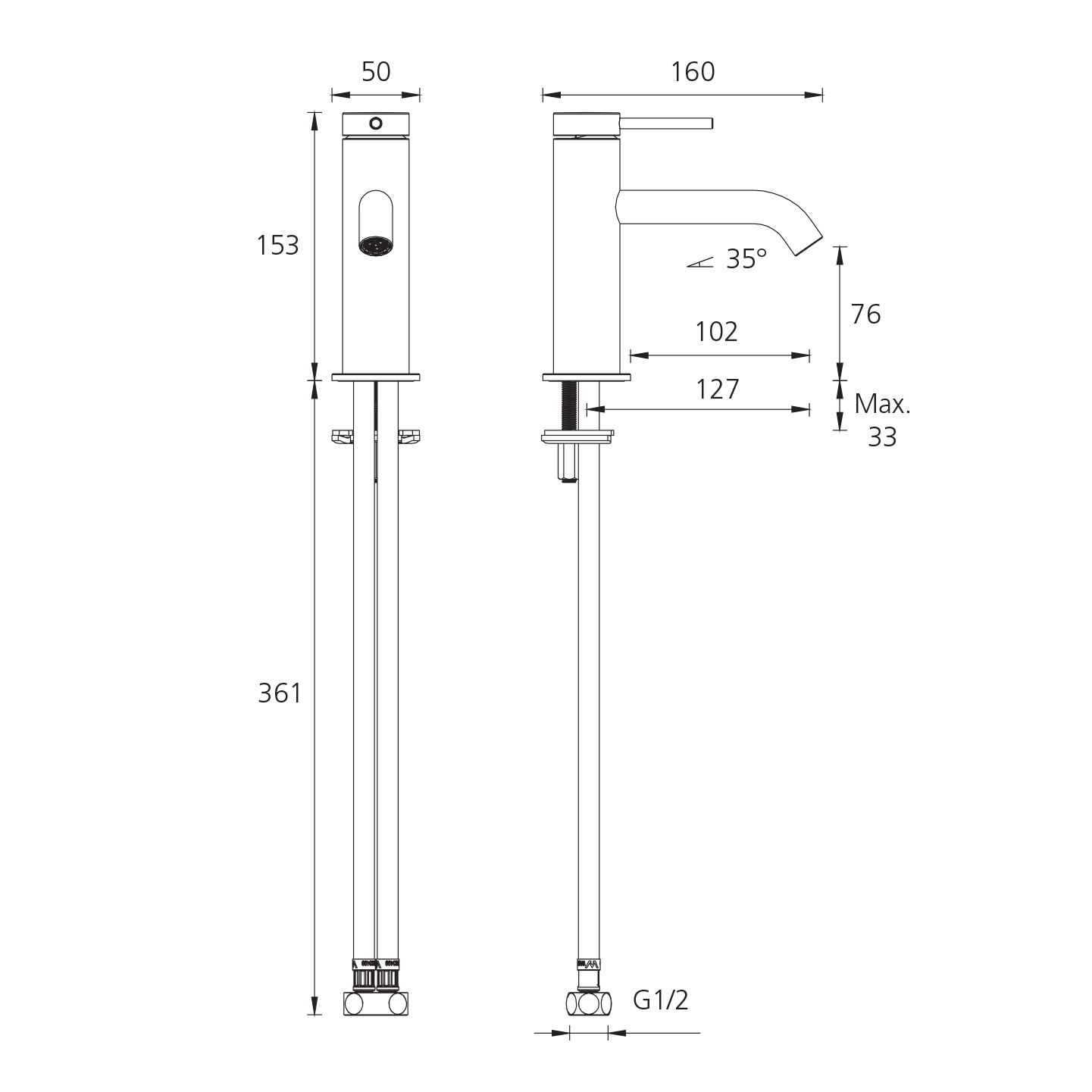 Venice basin and tower basin mixers are available with a straight, curved or angled spout. Wall mixer sets and wall spouts come in straight and curved spout options.