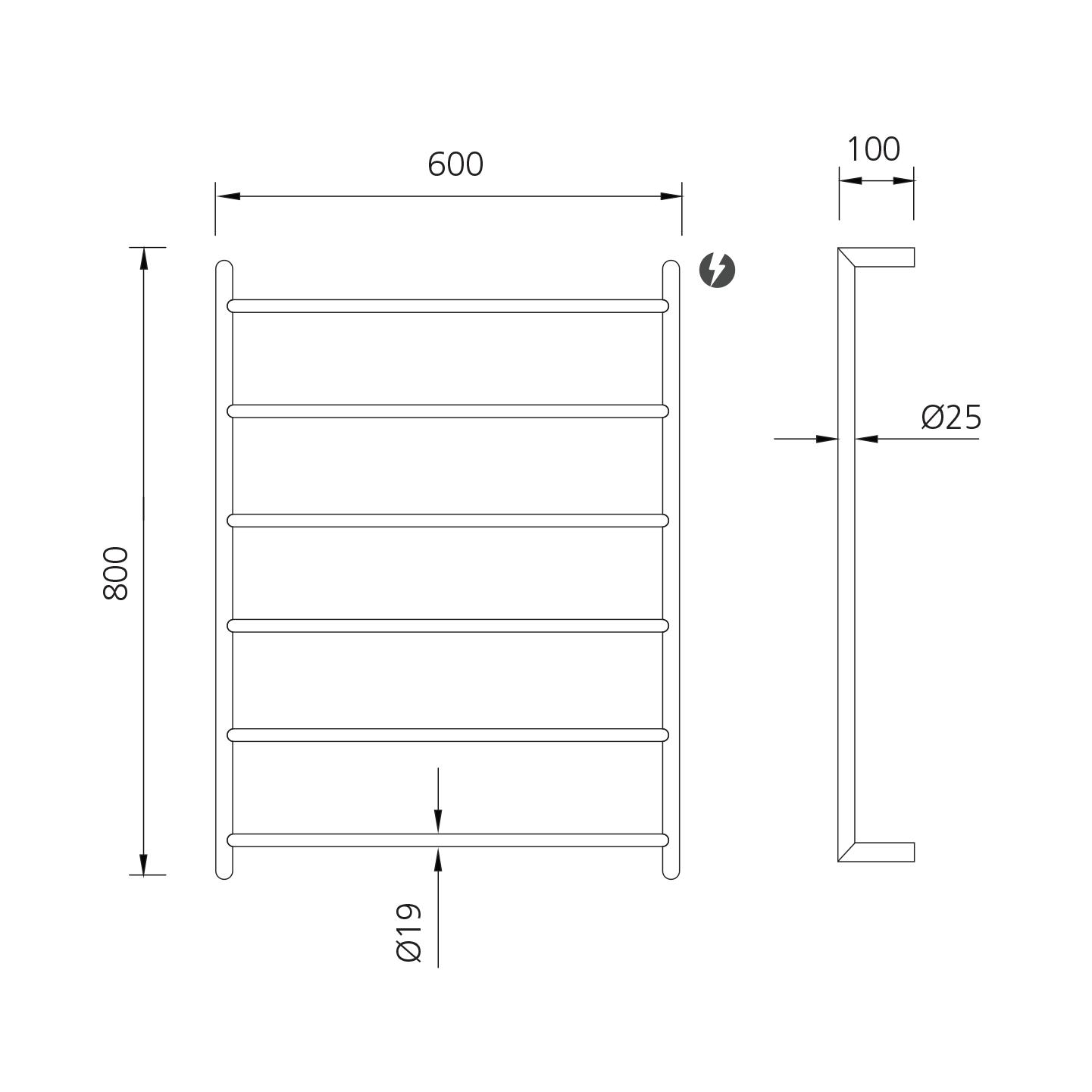 800 (H) x 600 (W) x 100 (D) mm