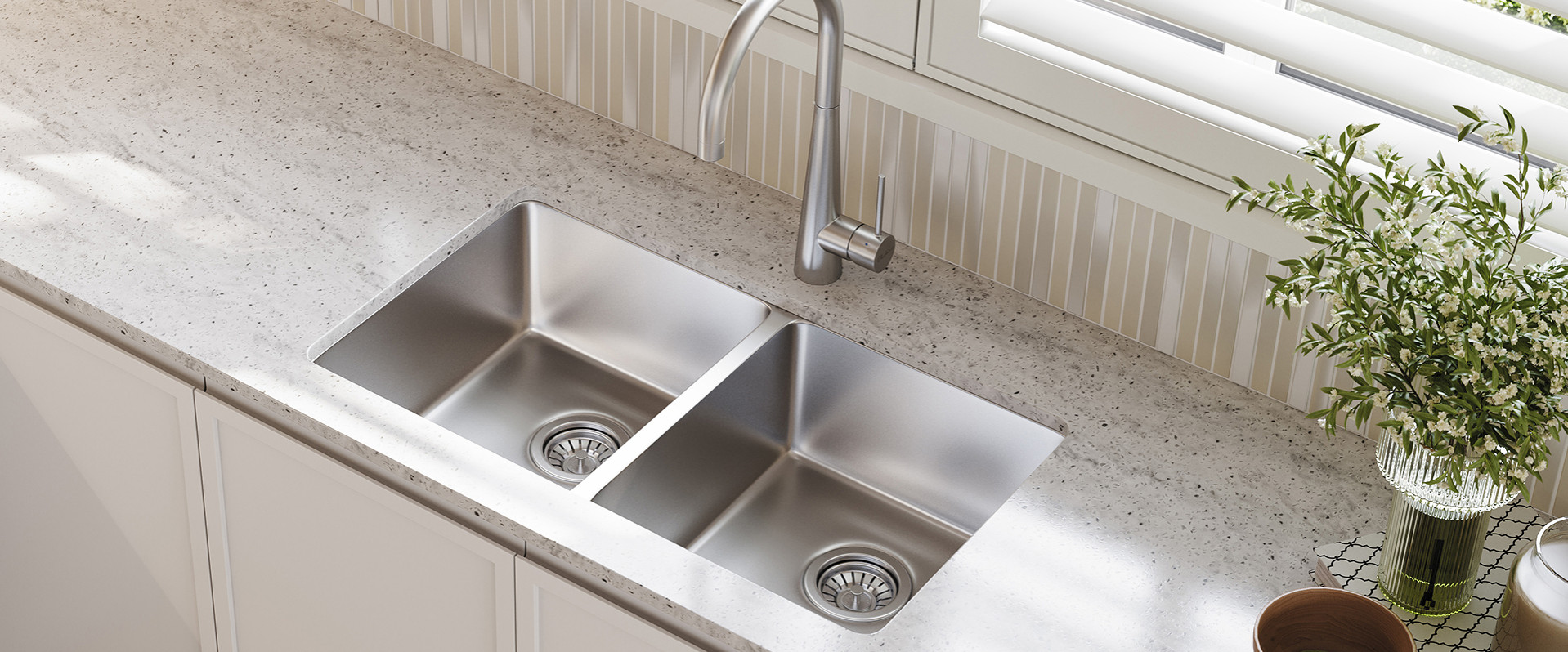 Drains water efficiently into the sink.